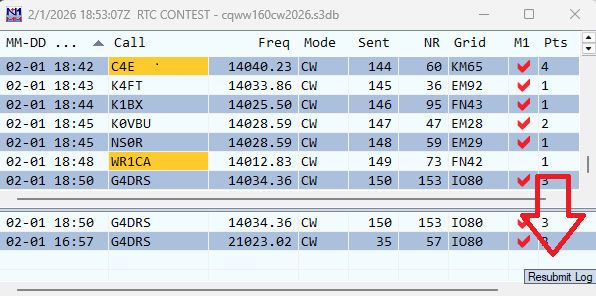 The callsign entered in your logger must match the RTC log owner’s callsign exactly. Logs with mismatched callsigns will not be accepted.